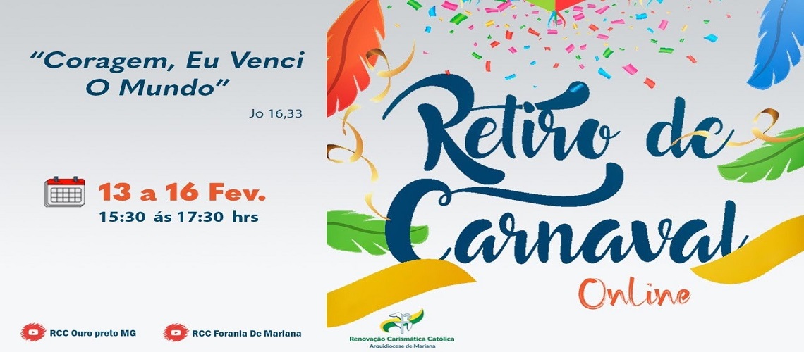 O Senhor conta com a sua ousadia! Ele precisa apenas que você se desafie! Deixe ele mudar a sua vida através desse retiro! Nós, da Renovação Carismática Católica de Mariana e Ouro Preto, esperamos por você para esse encontro pessoal com nosso Senhor e Salvador Jesus Cristo através do batismo no Espírito Santo entre os dias 13 e 16 de fevereiro!
