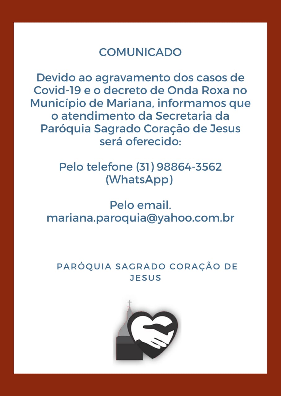 COMUNICADO - ATENDIMENTO ESCRITÓRIO PAROQUIAL