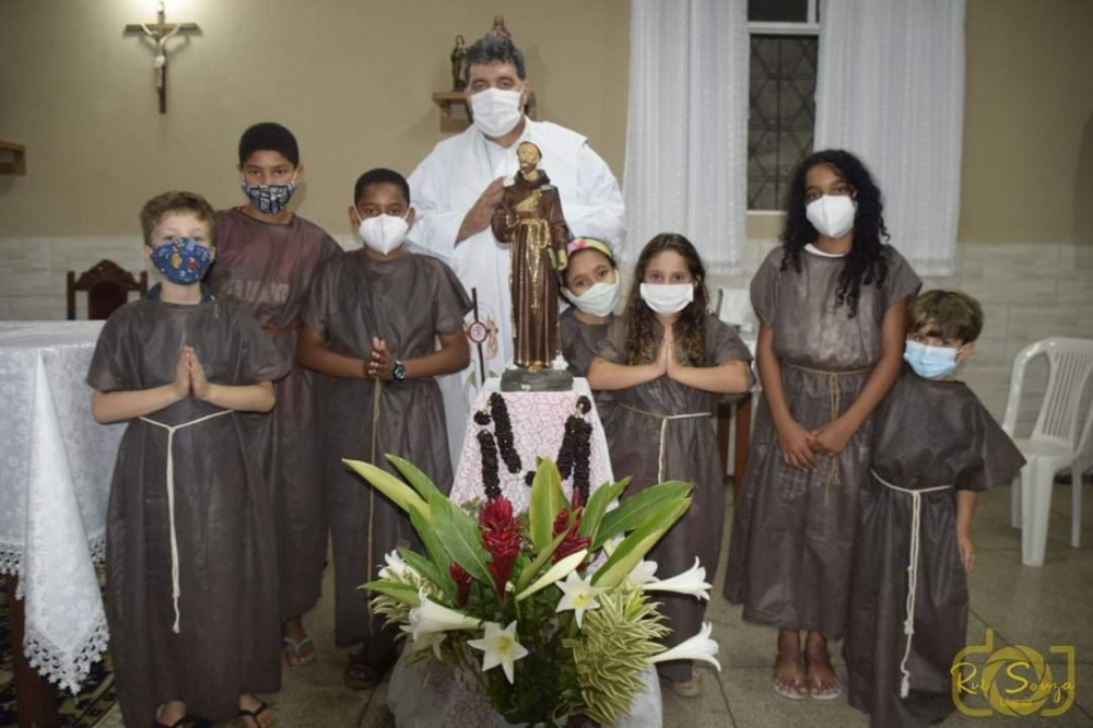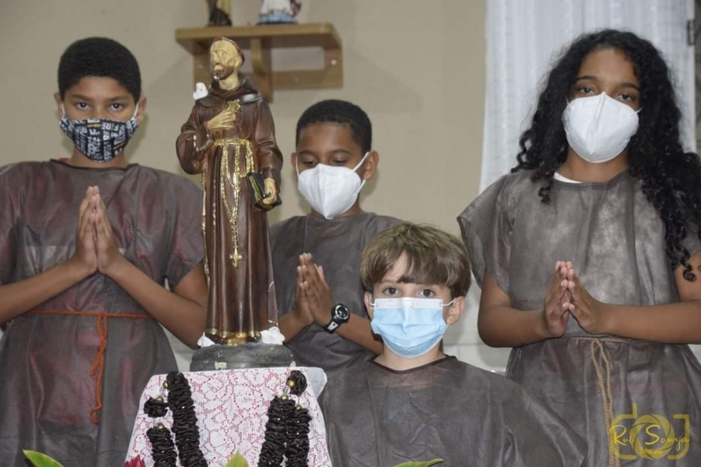 Ao final da celebração, a equipe de liturgia preparou uma linda homenagem ao Santo padroeiro, em que crianças da comunidade se apresentaram usando vestes semelhantes às de São Francisco.