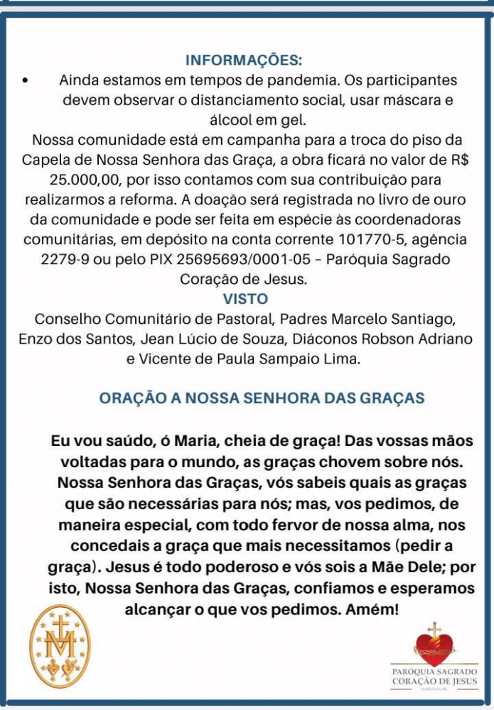 PROGRAMAÇÃO TRÍDUO E FESTA NOSSA SENHORA DAS GRAÇAS