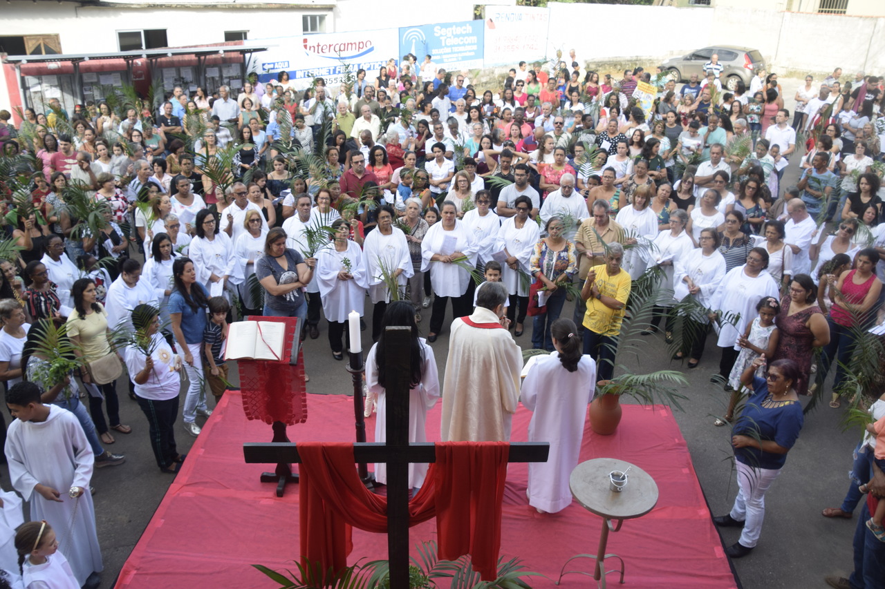 Dando início à Semana Santa, a paróquia Sagrado Coração de Jesus celebrou o Domingo de Ramos e da Paixão do Senhor. Ele marca o início da Semana Santa porque mistura os gritos de Hosanas, com os Clamores da Paixão de Cristo. O povo acolhe Jesus balançando seus ramos de oliveiras e palmeiras. Os ramos significam a vitória: “Hosana ao Filho de Davi: bendito seja o que vem em nome do Senhor, o Rei de Israel, hosana nas alturas”. Neste dia os cristãos manifestam sua fé em Jesus, levando ramos à igreja para serem abençoados pelo sacerdote. Nessa benção, a Igreja pede a saúde do corpo e da alma dos que moram nas casas onde esses ramos serão guardados. Os Ramos santos nos fazem lembrar que, batizados, somos filhos de Deus, membros de Cristo, participantes da Igreja, defensores da fé católica.