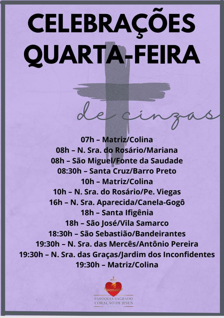 CELEBRAÇÕES QUARTA FEIRA DE CINZAS