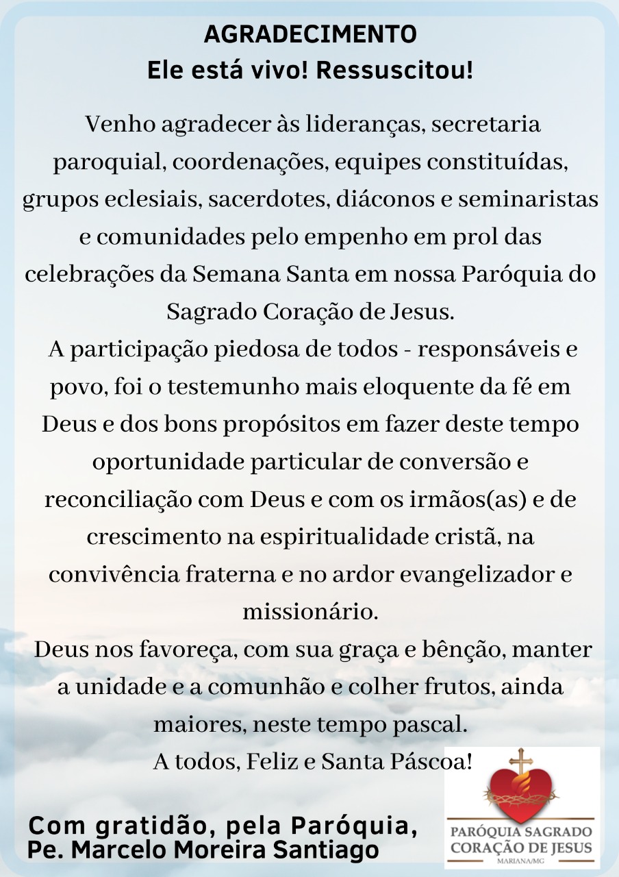 PÁROCO AGRADECE PARTICIPAÇÃO NA SEMANA SANTA