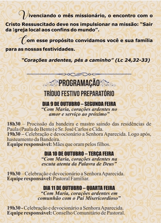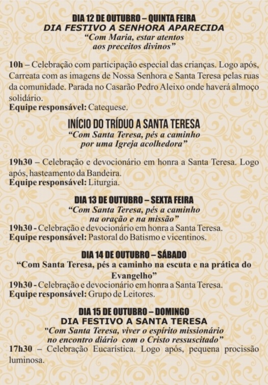Festas de Nossa Senhora Aparecida e Santa Teresa D'Ávila