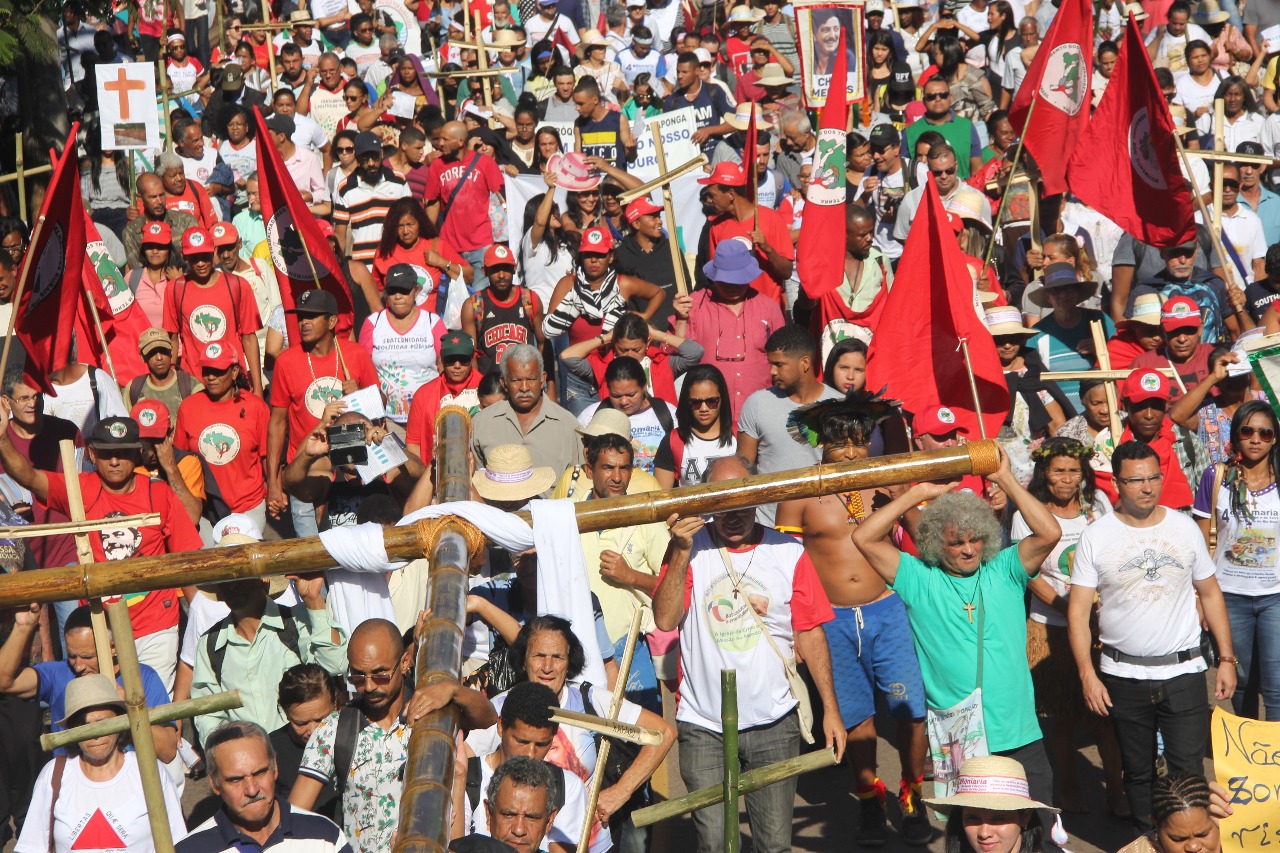 Na chegada, os romeiros tiveram uma acolhida fraterna, com café e um lanche reforçado, oração e diversas falas: palavras de ordem e testemunhos de lideranças eclesiais, pastorais, movimentos populares, indígenas e quilombolas, incluindo a fala do padre João Carlos Siqueira, deputado federal.