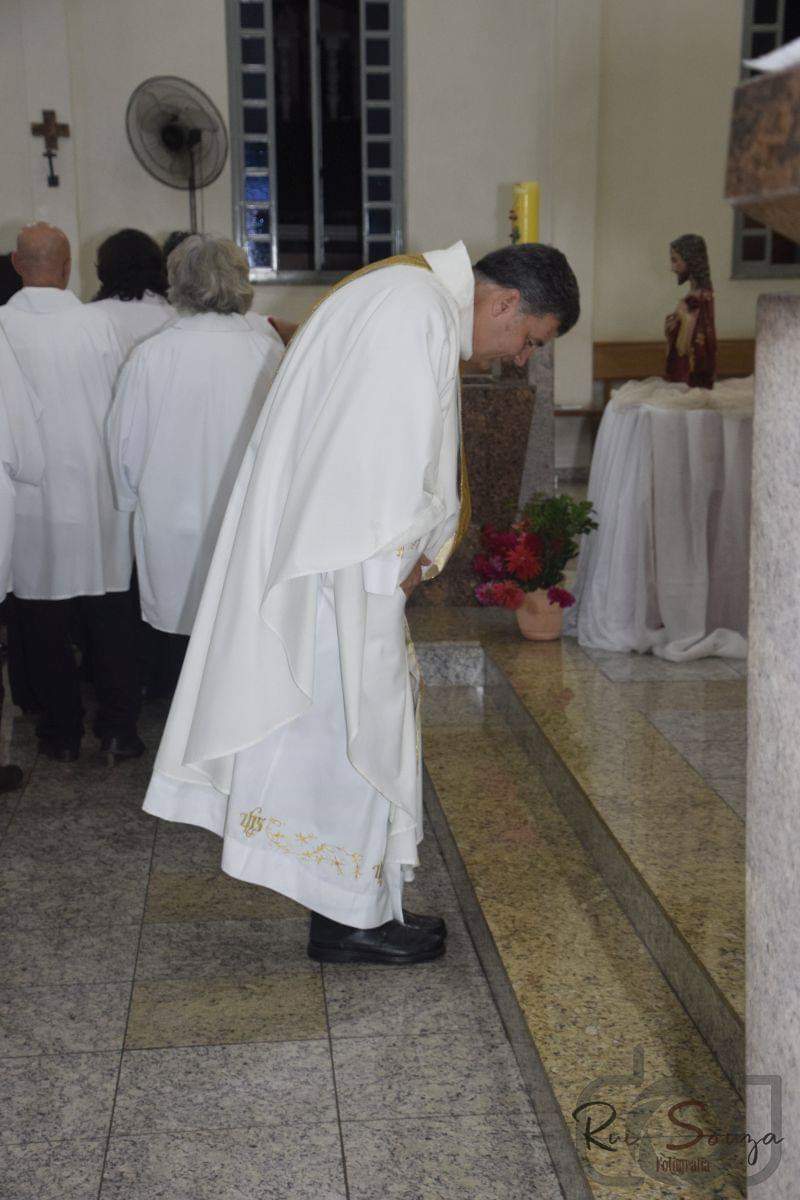 Em sua homilia, o padre nos recorda que a festa do Sagrado Coração de Jesus nos impulsiona a assumir o compromisso de evangelização e dedicação aos projetos de Deus. Devemos tornar o nosso coração semelhante ao coração do nosso patrono, revestindo-nos dos mesmos sentimentos de Cristo, tornando a nossa fé operante, vivendo a comunhão fraterna com os nossos irmãos, a começar com os pequenos e mais necessitados. Ele também nos motiva a termos os mesmos sentimentos do coração do nosso salvador, trilhando o caminho da santidade que é para todos que se dispõem à conversão.