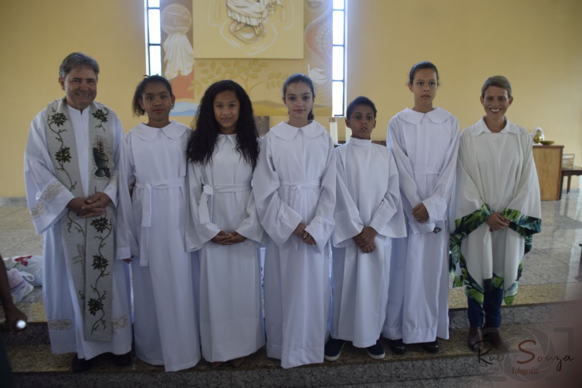 É com grande alegria que a Paróquia Sagrado Coração de Jesus e a Comunidade do Sagrado Coração de Jesus, da Colina, receberam, no domingo 17/11, mais cinco acólitos para prestarem os serviços na comunidade como coroinhas.