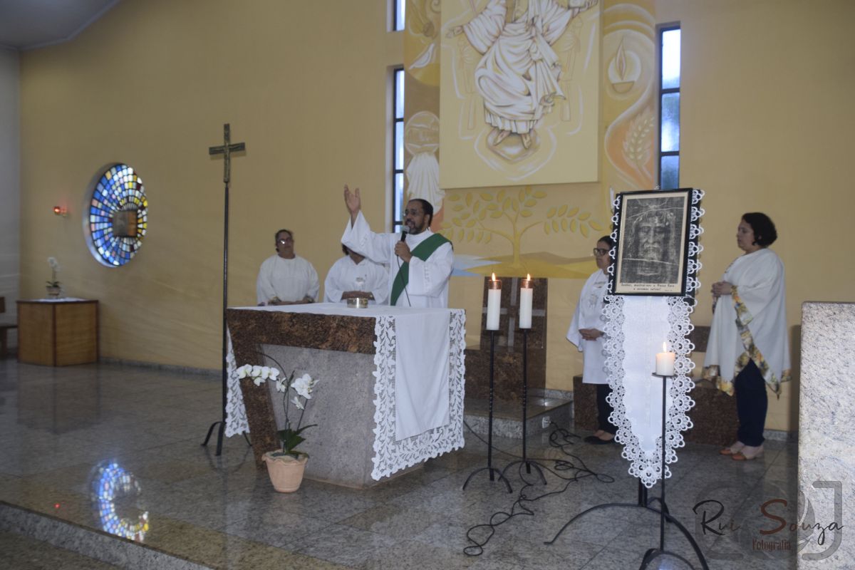 Na terça-feira de Carnaval, dia da devoção à Sagrada Face de Jesus, após a novena, teve início a Celebração, presidida pelo diácono Robson. Em sua homilia, o diácono destacou a imagem da Sagrada Face - Jesus Cristo é o rosto da misericórdia do Pai. Preciosas são as promessas de Nosso Senhor Jesus Cristo aos devotos.