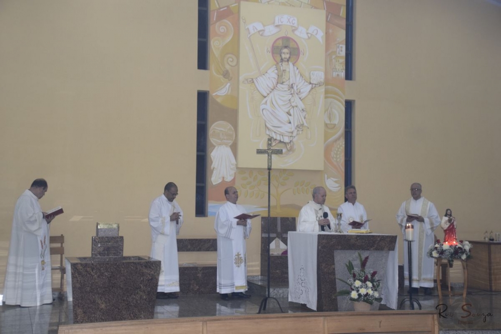 Ao final da celebração, o pároco, padre Geraldo Barbosa, conduziu a Consagração ao Sagrado Coração de Jesus, convidando todos a participarem desse momento de entrega a Jesus Cristo.