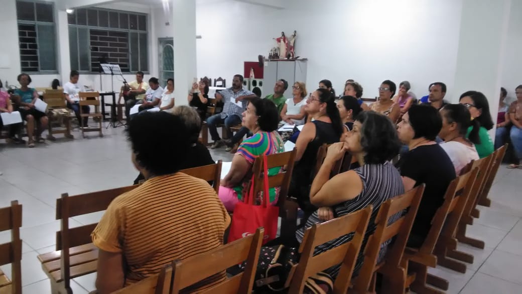 No dia 11 de março, às 19h, no Centro de Pastoral Cônego Antônio de Pádua, foi realizada uma formação sobre o Ofício Divino das Comunidades. O encontro teve a proposta de reunir coordenadores de liturgia, equipes de celebrações, cantores e Ministros da Palavra e da Eucaristia, além de outras pessoas, para refletirem sobre essa oração comunitária que representa uma grande riqueza da nossa Igreja.