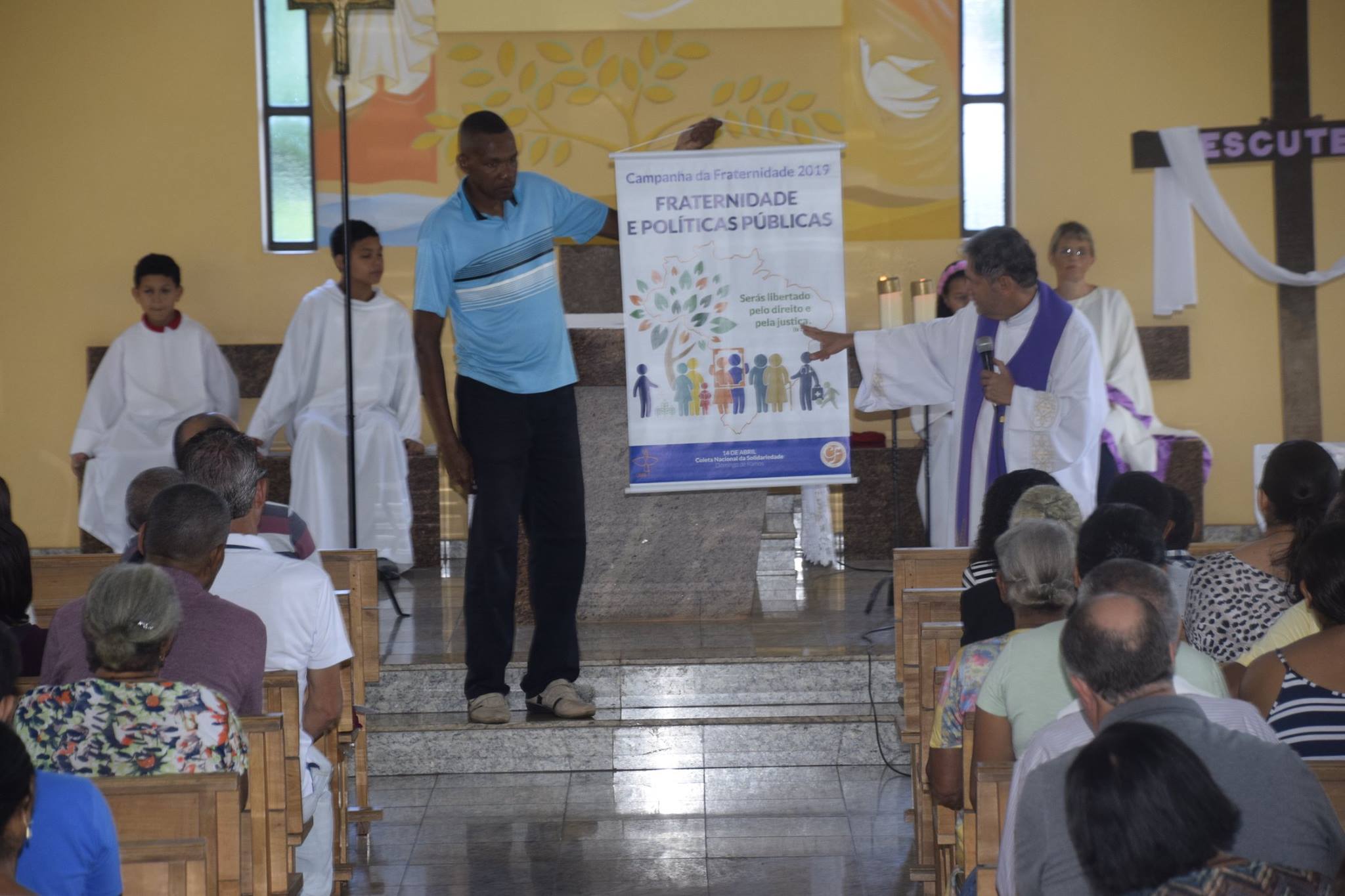 A quaresma é o tempo de preparação para a Páscoa. Neste segundo domingo da quaresma, a celebração eucarística das 10h, na Matriz do Sagrado Coração de Jesus, presidida pelo pároco, padre Geraldo Barbosa, relembrou aos presentes que a melhor maneira de nos prepararmos para a Páscoa é mudando nossa vida, procurando exercer a prática da esmola, da oração e do jejum. O pároco ressaltou o tema da Campanha de fraternidade que, neste ano de 2019, convida-nos a refletirmos sobre as políticas públicas.